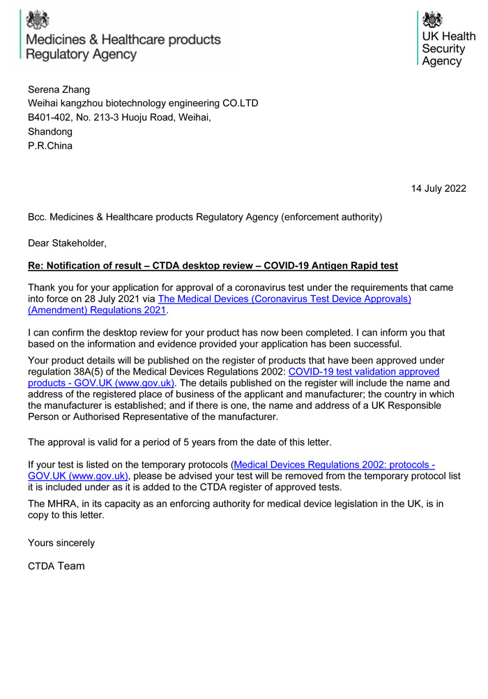 新冠抗原-英國CTDA認(rèn)證