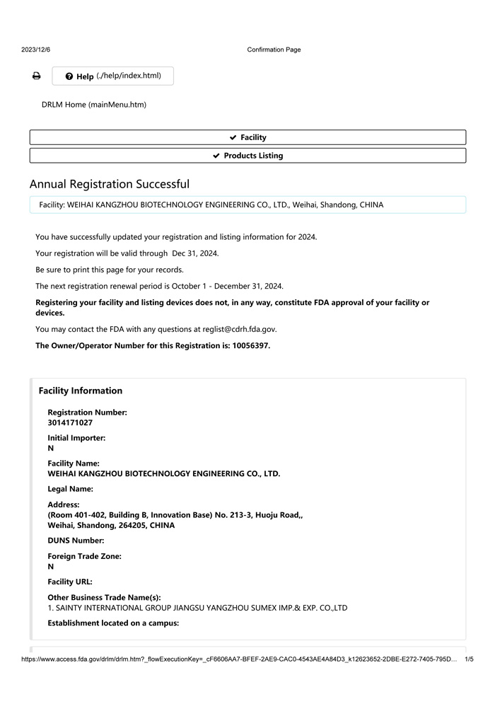 FDA 2024年注冊(cè)憑證