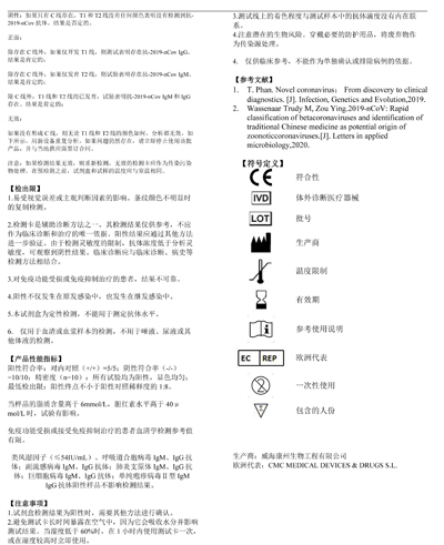預(yù)期用途:用于體外定性檢測(cè)人血清、血漿、全血中新冠病毒IgG/IgM抗體。